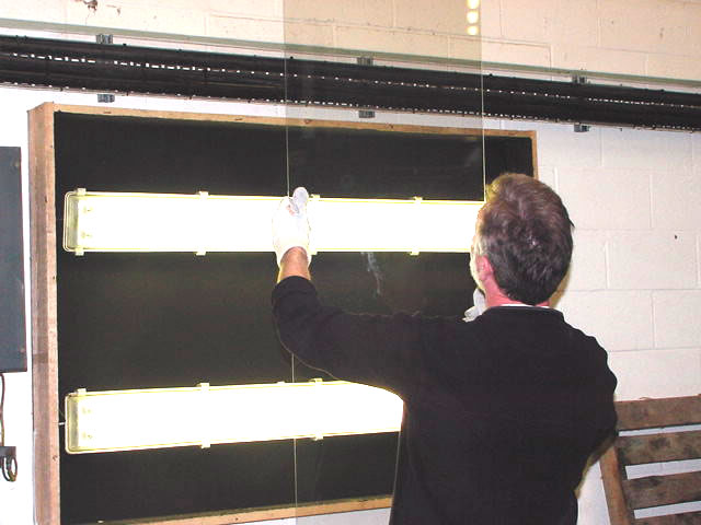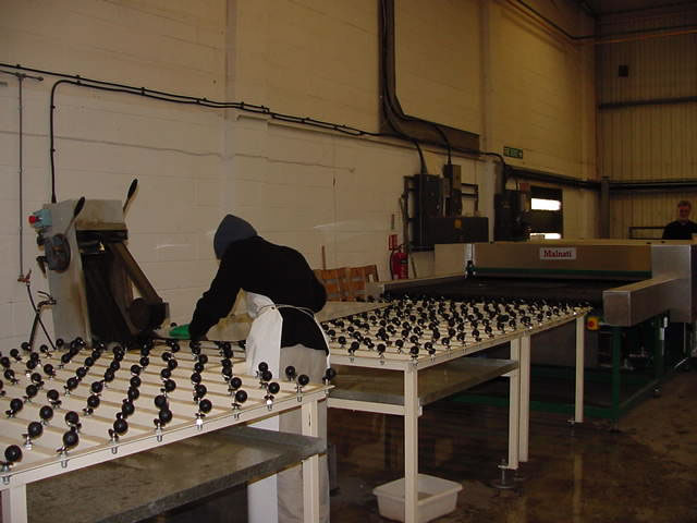 After arrissing the glass passes onto the washing machine and the tested for scratching before going to the Toughening Plant